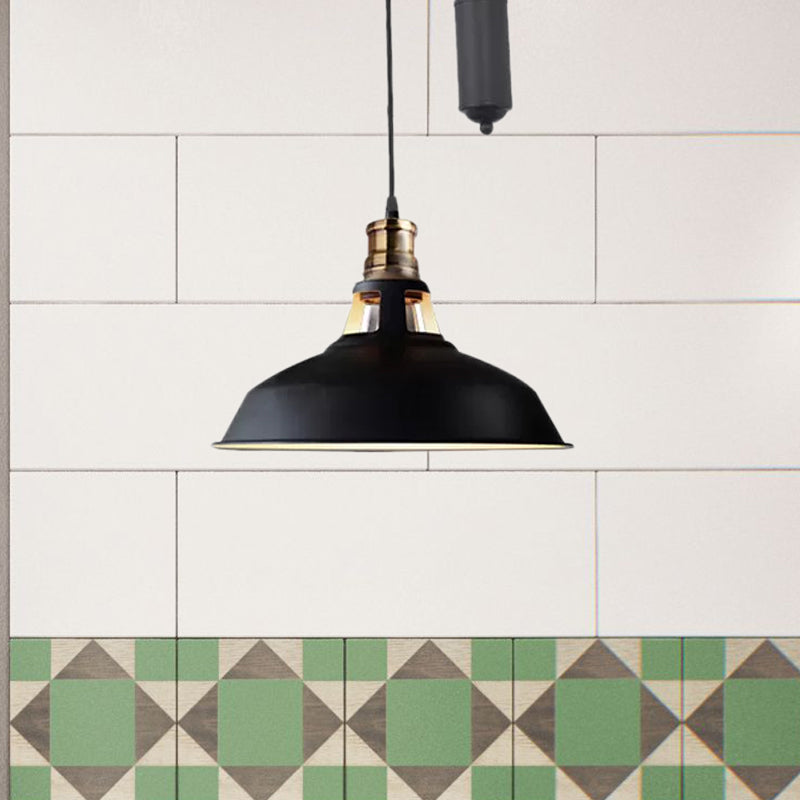 Farmhouse-Style Barn Pendant Ceiling Lamp - Rustic Hanging Light With Pulley For Bedroom Black