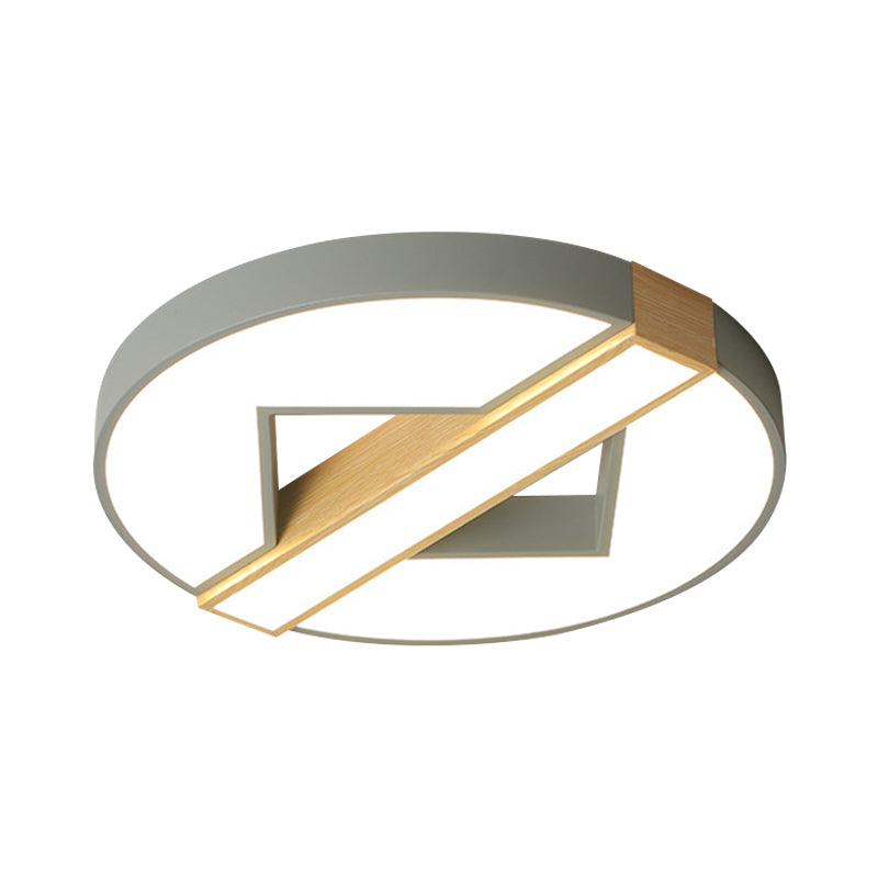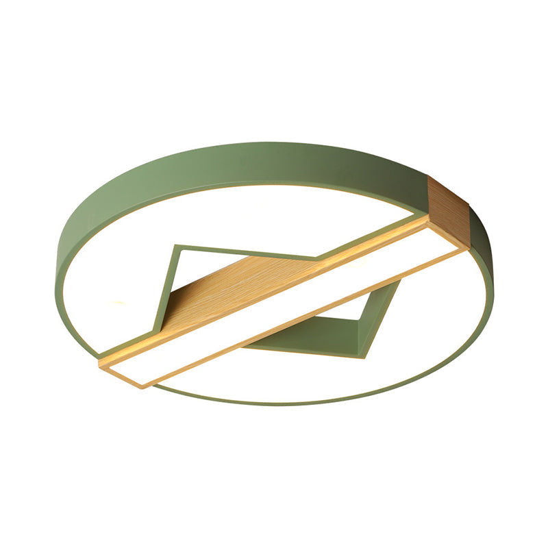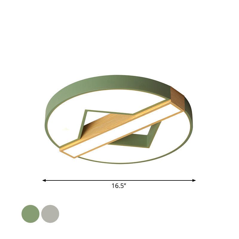 Led Macaron Green/Grey - Wood Bedroom Ceiling Light - 16.5’/20.5’ Flushmount With Round Acrylic