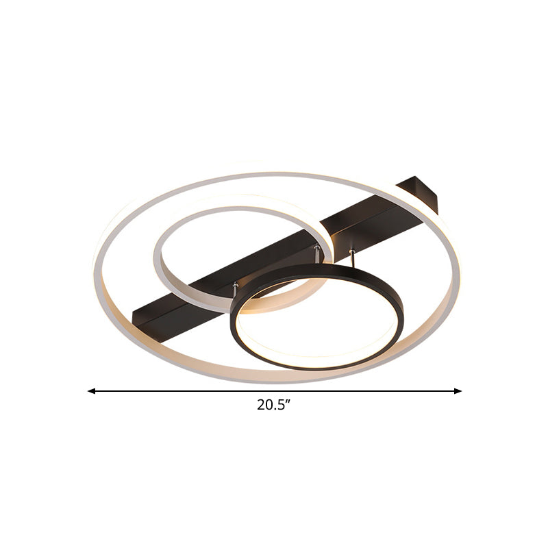 16.5/20.5 Contemporary Black And White Led Semi Flush Mount Ceiling Light Black-White / 16.5