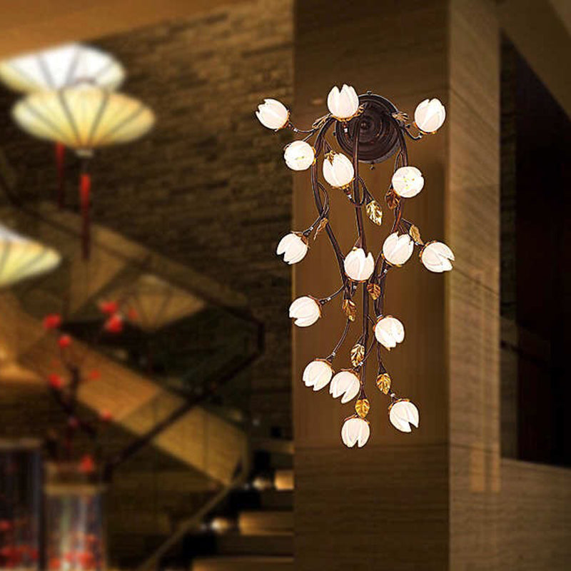 Applique murale LED en verre rose Lotus en noir - Élégant luminaire à 16 ampoules pour les salons pastoraux
