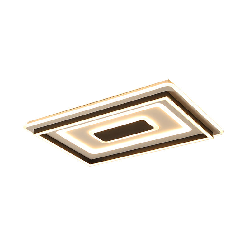 Plafonnier LED large de 18"/21,5"/35,5" - Luminaire carré/rectangulaire noir pour salon, avec abat-jour en acrylique - Lumière chaude/blanche