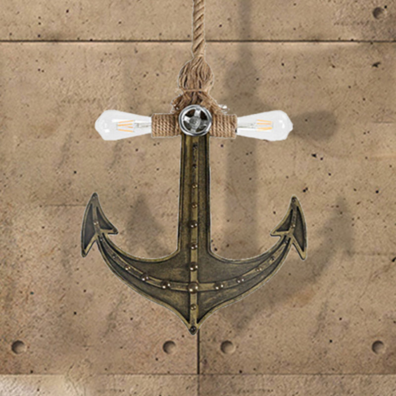 Lustre suspendu côtier en bronze antique/gris argenté pour salle à manger - Luminaire à ampoule exposée à 2 ampoules