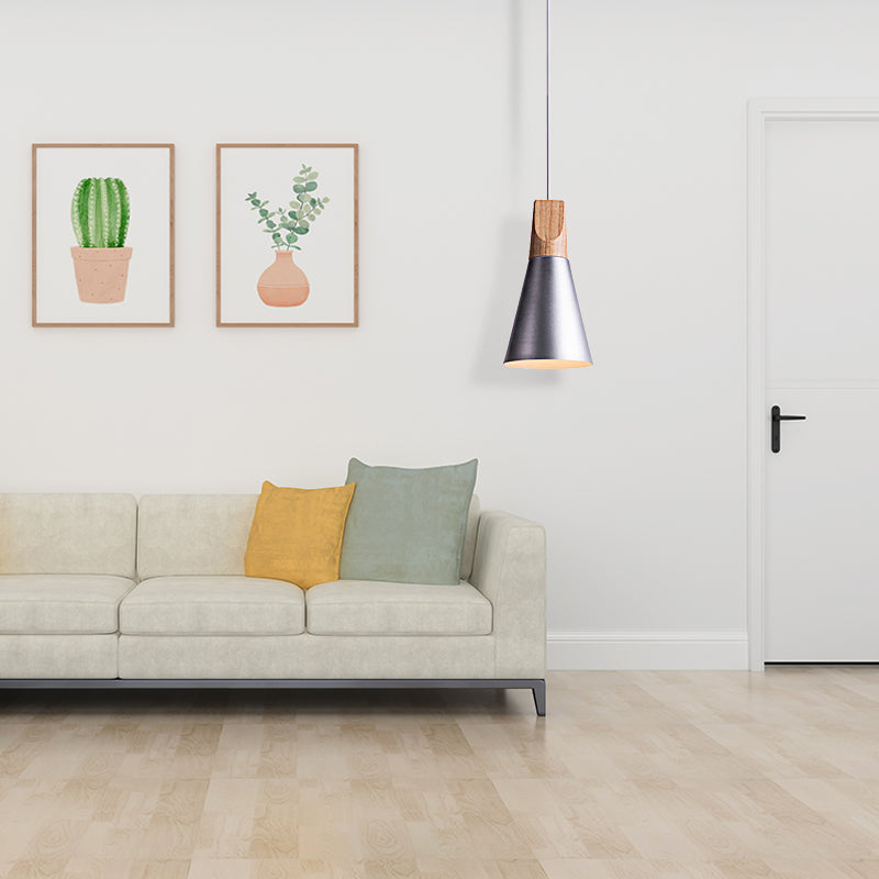 Suspension en métal à abat-jour conique - Luminaire suspendu de cuisine contemporain (5,5"/8,5"/10" W, gris/argent/jaune)