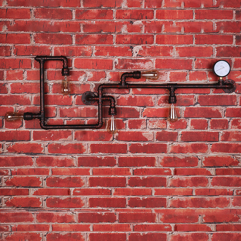 Applique murale moderne à 5 têtes : applique métallique labyrinthe en noir/rouille avec ampoule ouverte et déco de jauge