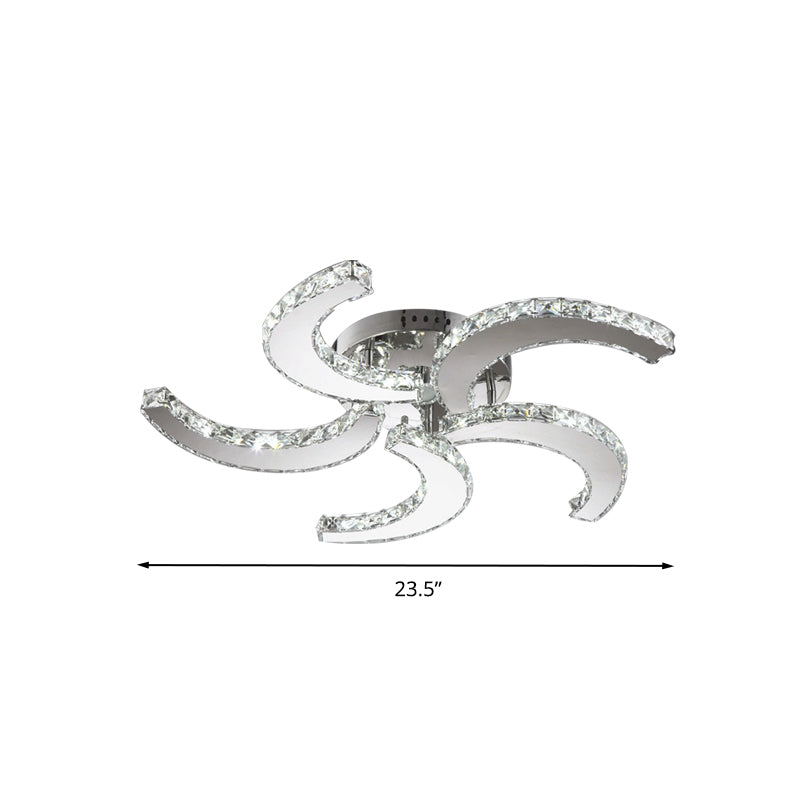 Simple Windmill Crystal Semi Flush Mount: 5-Light Light In Chrome Bedroom Lighting With Warm/White/3
