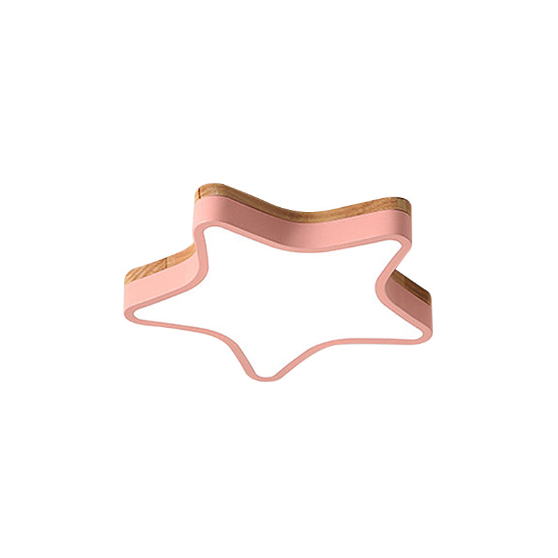 Wood Star Flush Cartoon Led Ceiling Light For Kindergarten Room Pink / 18’