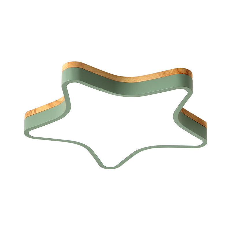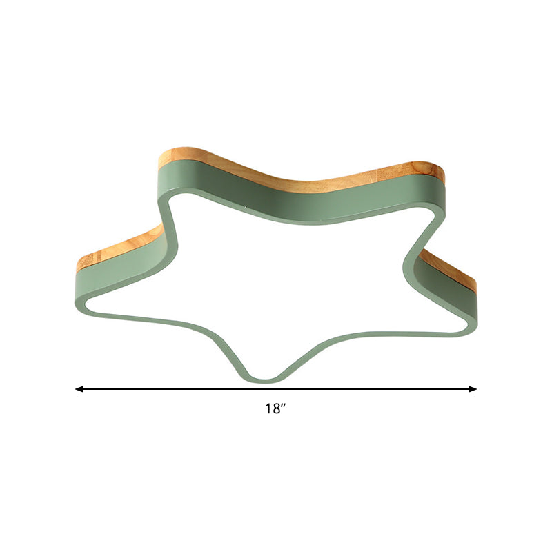 Wood Star Flush Cartoon Led Ceiling Light For Kindergarten Room Green / 18’