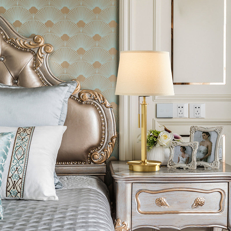 Lampe de table blanche moderniste avec chaînette - Abat-jour en tissu tonneau, lampe de chevet à 1 tête