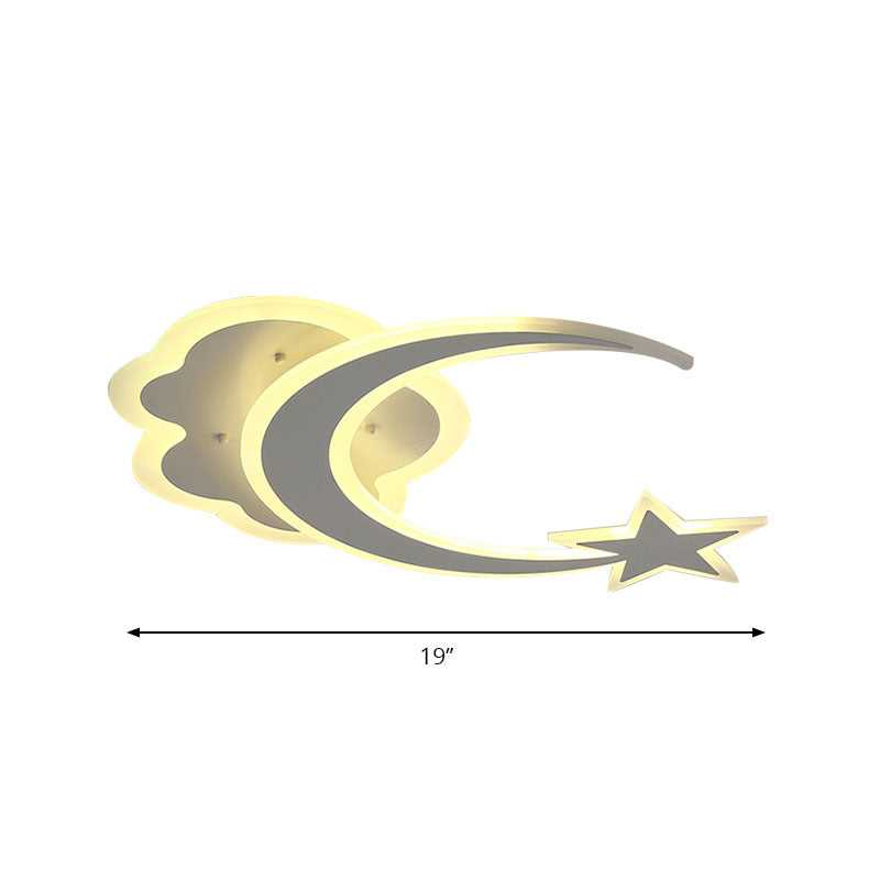Contemporary Moon And Star Bedroom Ceiling Light White / Warm