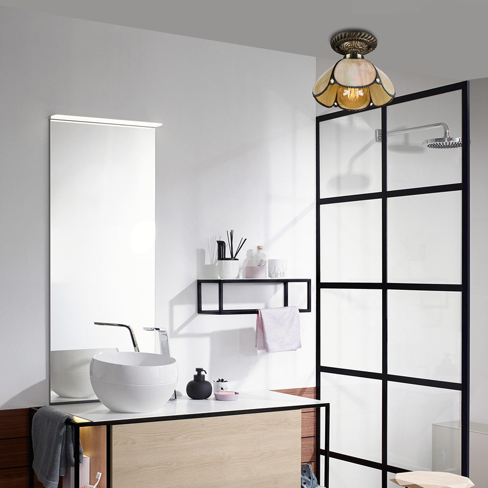 Tiffany Antique Art Glass Ceiling Light For Kitchen - Beige Domed Mount With 1 Head