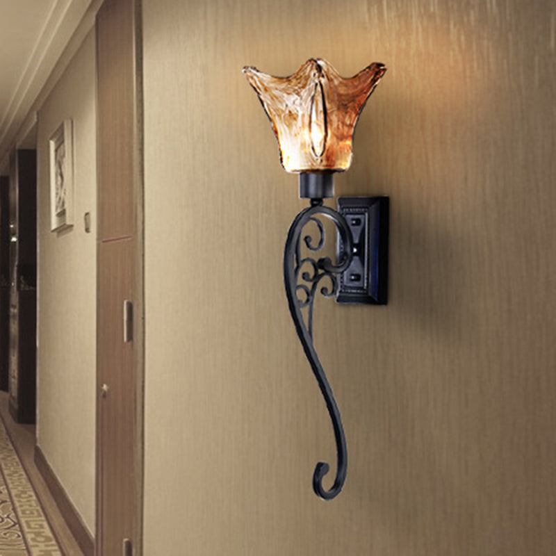 Applique murale Vintage Bell pour chambre à coucher : support mural LED en verre ambré, noir, 38,1 cm/66 cm de haut