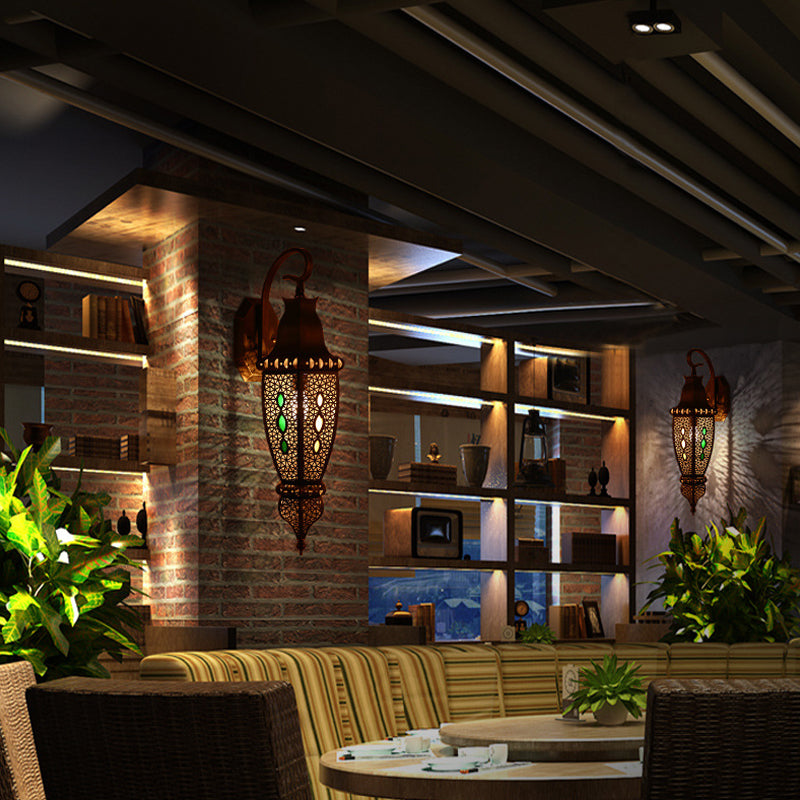Abat-jour arabe creux en métal - Applique murale noire à tête unique pour restaurants