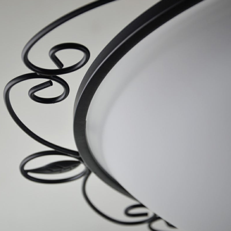 Plafonnier traditionnel à dôme noir avec 3 têtes en verre opale et décor tourbillonnant
