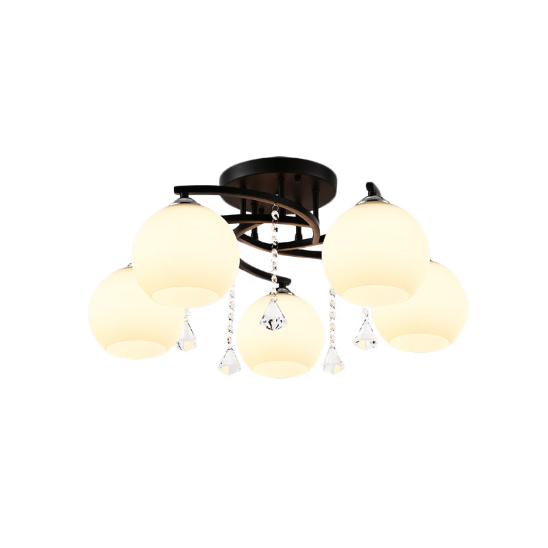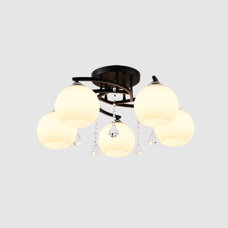Lampe semi-encastrée en forme de sphère avec finition noire moderne et verre crème - Luminaire encastré en spirale à 5 ampoules
