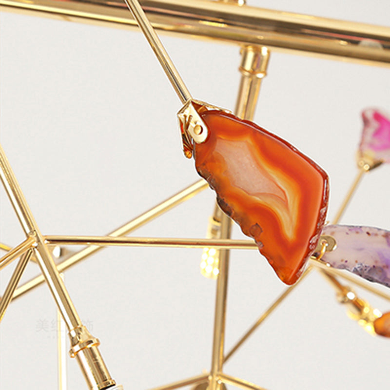Luminaire LED moderne en métal avec accent d'agate, lumière chaude/blanche – Design de branche, éclairage suspendu doré pour le salon