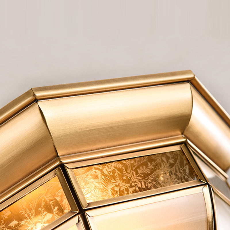 Traditional Milk Glass Led Flush Mount Ceiling Lamp For Living Room - Brass Hat