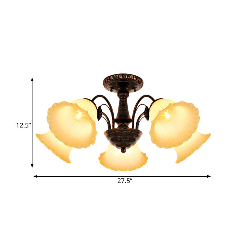 Bronze Countryside Blossom Ceiling Mount Light Fixture With Frosted Glass For Bedroom - 3/5 Lights