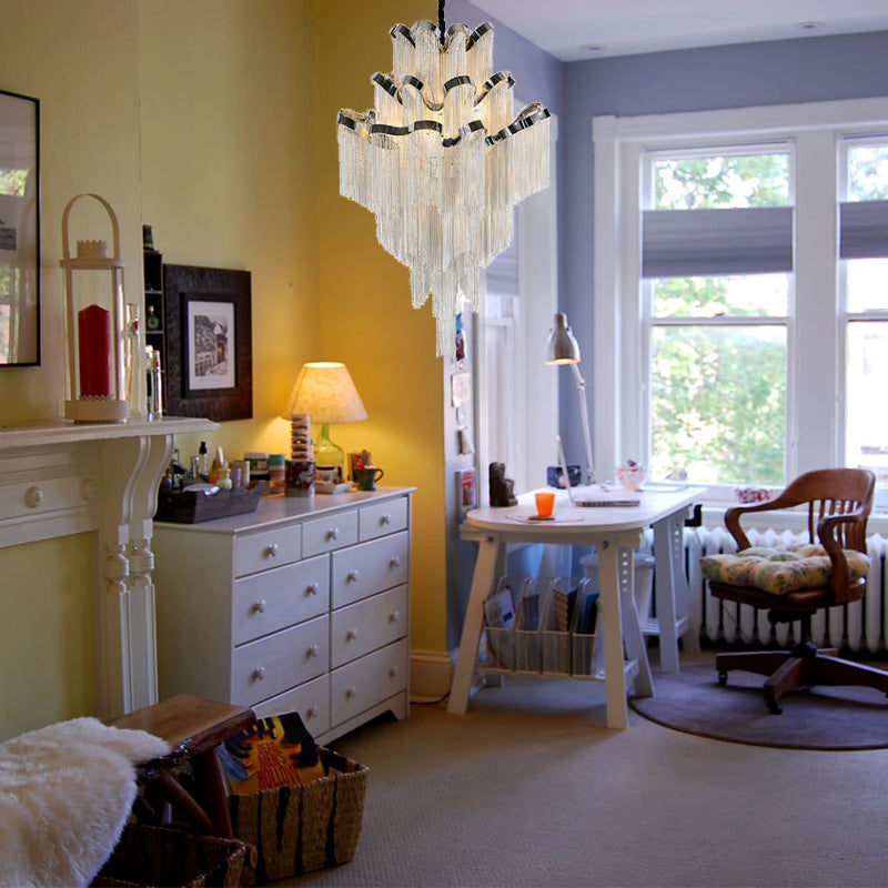 Lustre à chaîne en métal de style nordique moderniste - Plafonnier argenté à 8 lumières