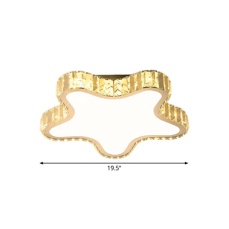 Modern Stainless-Steel Led Flushmount Ceiling Lamp With Clear Rectangular-Cut Crystals