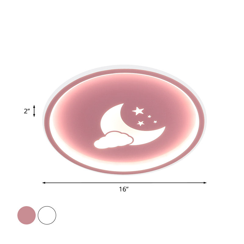 Contemporary Moon And Star Pink/White Round Acrylic Led Ceiling Light White