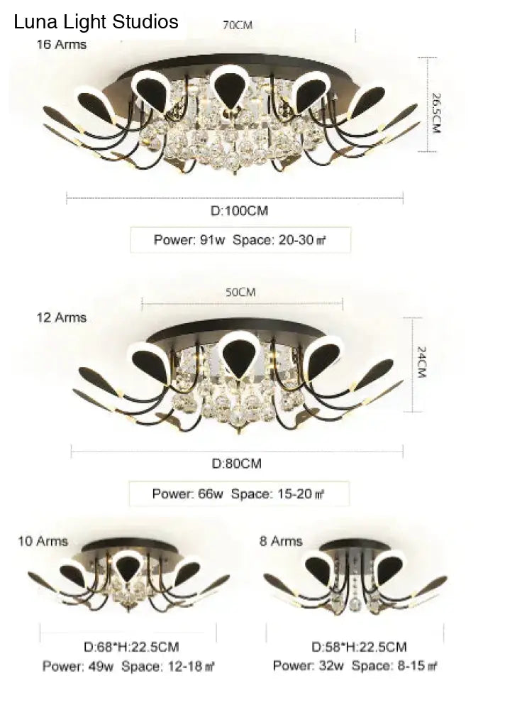 Cristal moderne plafonnier Led pour salon chambre salle d'étude blanc/noir couleur plafonnier Led Plafond
