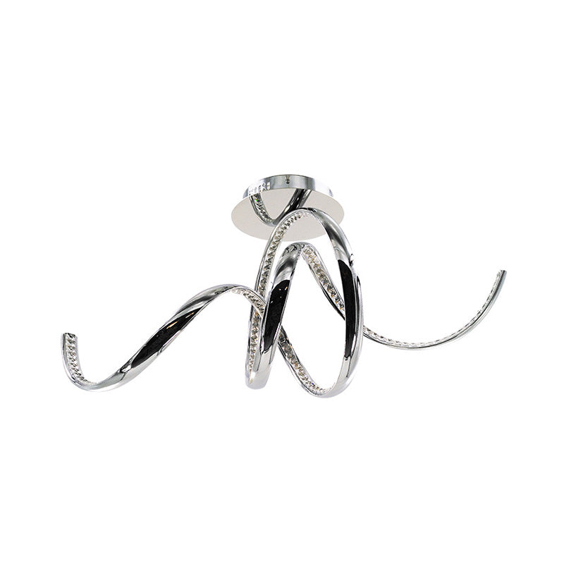 Plafonnier LED chromé avec design torsadé en cristal et double éclairage (chaud/blanc)