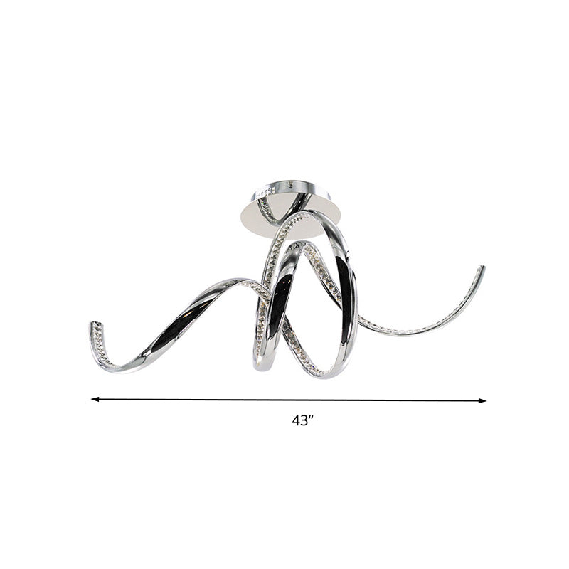 Chrome Led Ceiling Fixture With Crystal Twist Design And Dual Lighting (Warm/White)