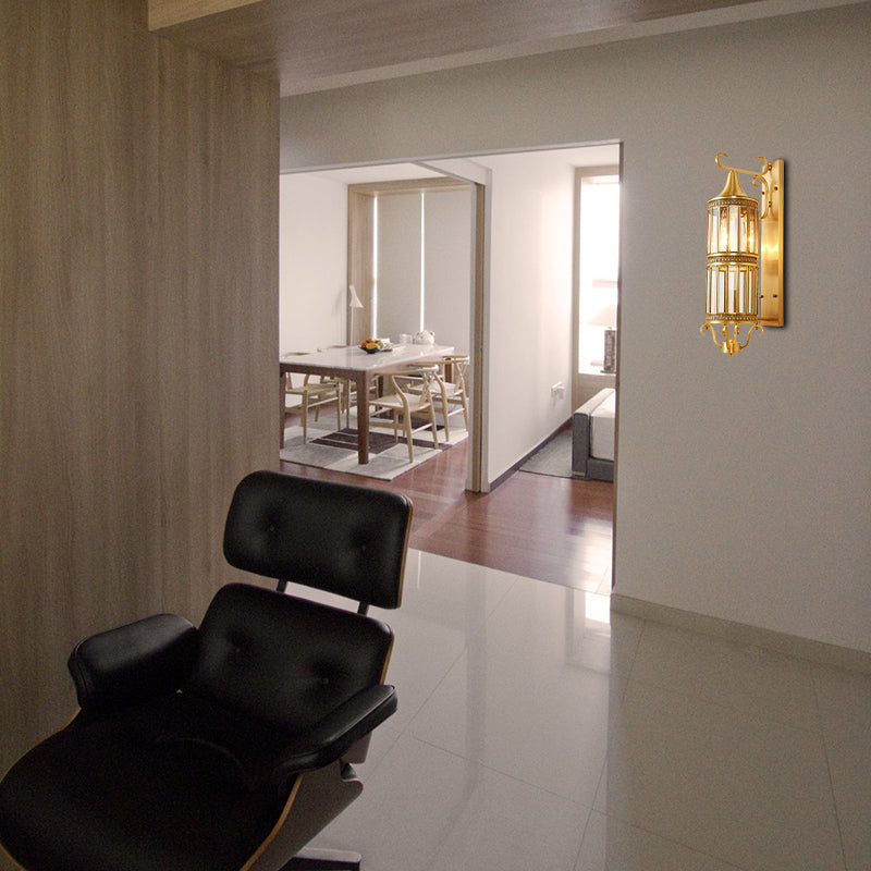Traditional Cylinder Metal Sconce Light - 1/3-Bulb Brass Entry Wall Fixture 6.5/10 Wide / 10