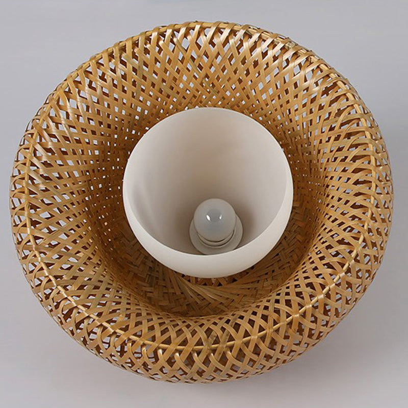 Ce produit est une « suspension en bambou à deux étages avec abat-jour en verre blanc laiteux ». La lumière est suspendue au plafond, ce qui la rend parfaite pour éclairer n'importe quel espace de votre maison. Le matériau en bambou et l'abat-jour en verre blanc confèrent à cette lumière un look oriental élégant qui ajoutera à coup sûr une touche de classe à n'importe quelle pièce. La lumière nécessite une ampoule (non incluse) et est compatible avec les ampoules LED, à incandescence et fluorescentes. La lumière peut être utilisée dans des prises électriques de 110 V-120 V ou de 220 V-240 V. Les dimensions globales de cette lumière sont de 12" 15" 18" (L x l x H). La longueur de la chaîne/du cordon est de 39,5" et la hauteur de l'abat-jour est de 7" 8" 9,5".