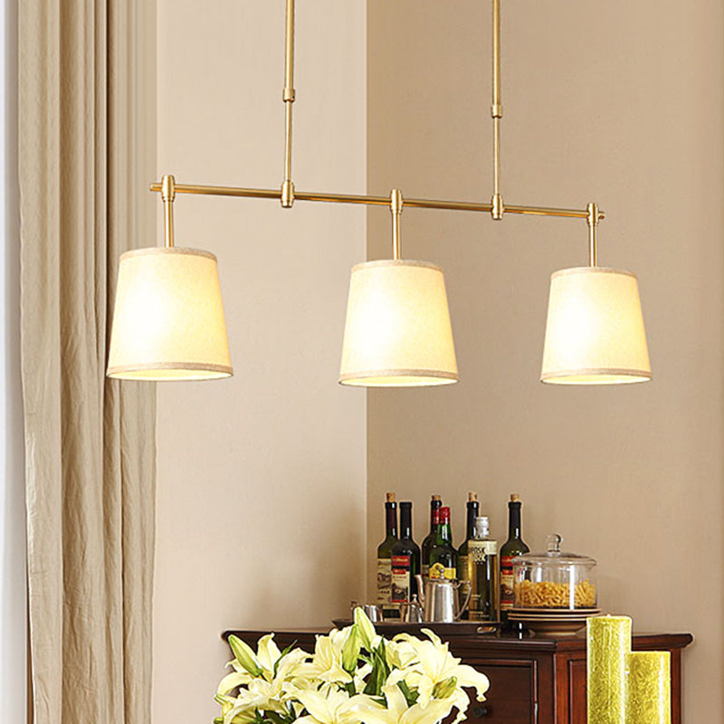 Traditional Fabric Barrel Pendant Light - 3-Light Dining Room Hanging Lamp In White/Green/Flaxen