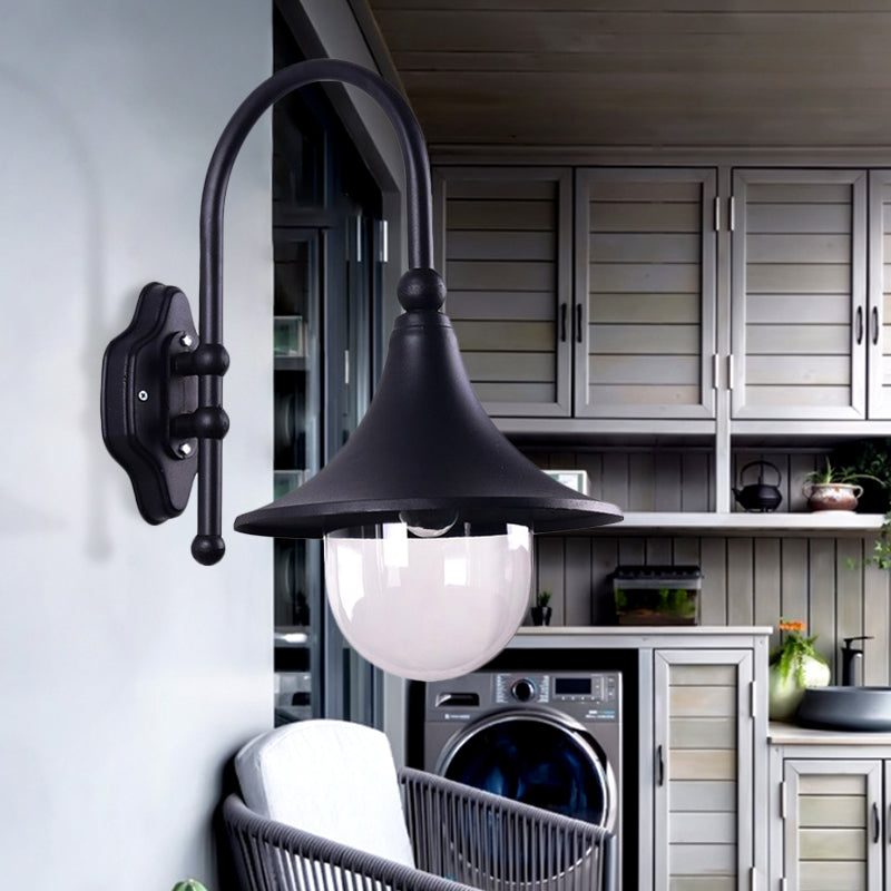 Industrial Flared Shade Metal Wall Lamp With Clear Glass Black/Rust Finish Black