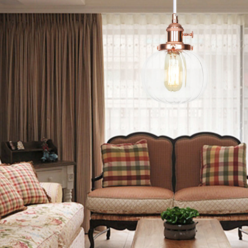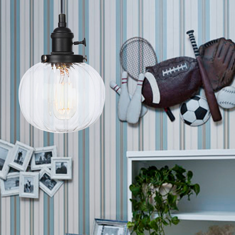 Il s'agit d'un luminaire suspendu Global, il est réglable et est disponible en noir, bronze et laiton. La lampe est une lampe à 1 lumière en verre strié ambré/transparent de style vintage. Elle est parfaite pour les salons. La lampe est à intensité variable et utilise une ampoule E26/E27.
