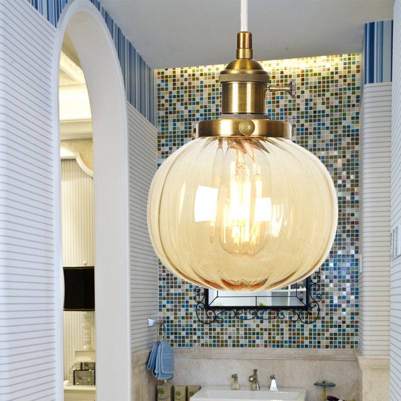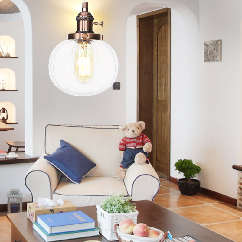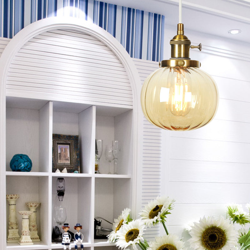 Vintage Style Amber/Clear Ridged Glass Pendant Light Fixture - 1 Adjustable Living Room Ceiling