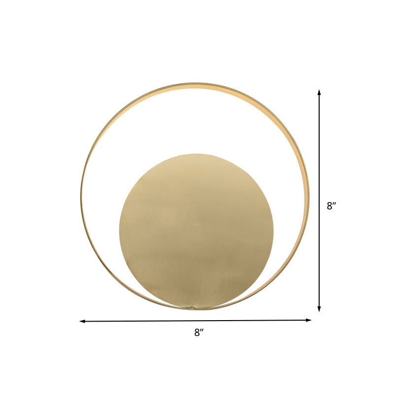 Ce produit est une applique murale en métal au design traditionnel. Il est de couleur or et émet une lumière blanche chaude. La lumière est LED et la source d'alimentation est électrique câblée directe. Les dimensions du luminaire sont de 8" x 8" x 2" et l'ampoule est incluse.