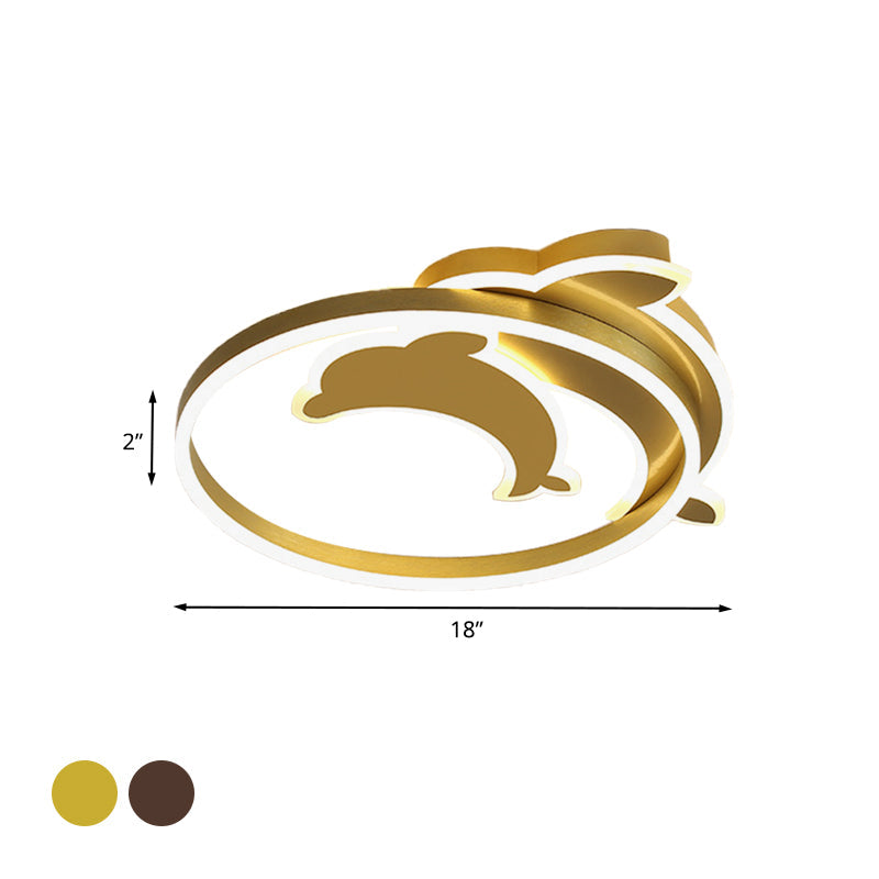 Contemporary Gold/Coffee Dolphin Flush Ceiling Light - Led Acrylic Mount Fixture For Bedroom