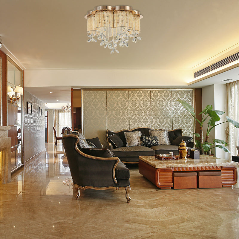 Modern Gold Flower Shade Flushmount Led Pendant Light With Clear Crystal Accents 19.5’/23.5’