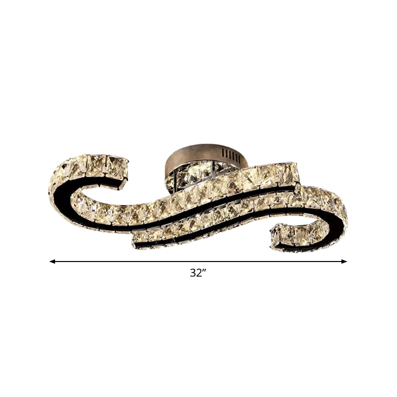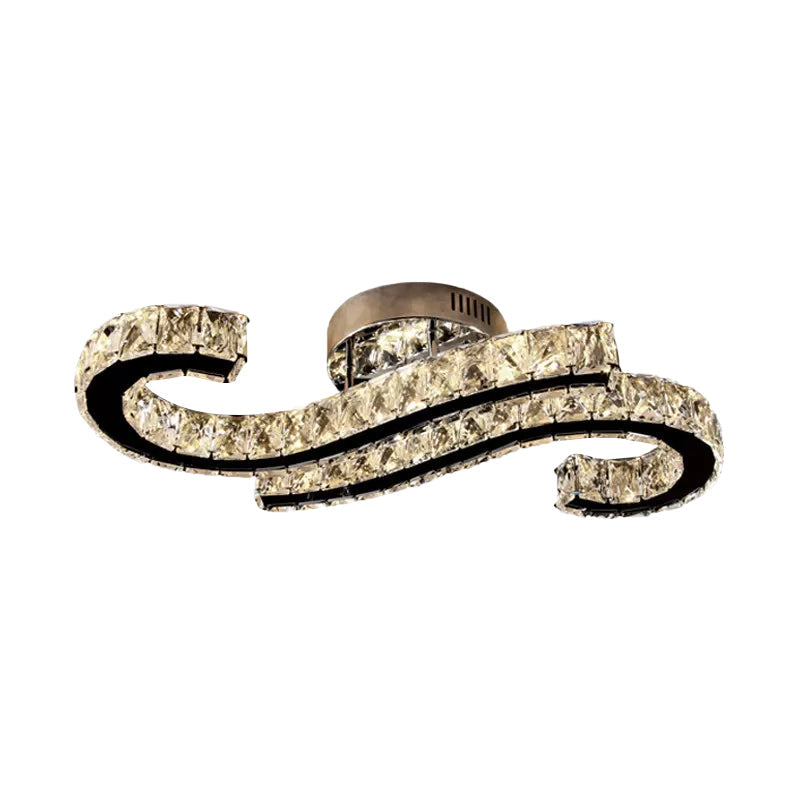 Plafonnier élégant en acier inoxydable cristallin avec éclairage LED semi-monté à lumière chaude/blanche