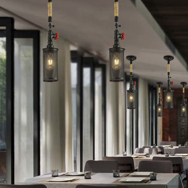 Plafonnier rotatif en métal noir élégant avec abat-jour cylindrique - Design industriel en maille