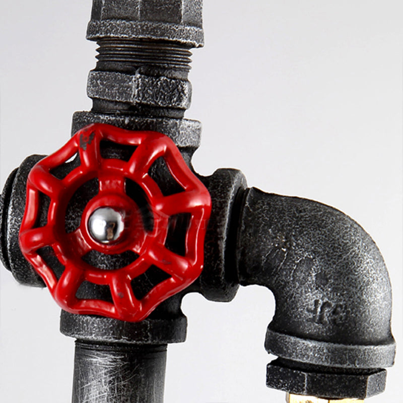 Lampe suspendue en fer noir avec grille de protection, jauge et valve - Style industriel