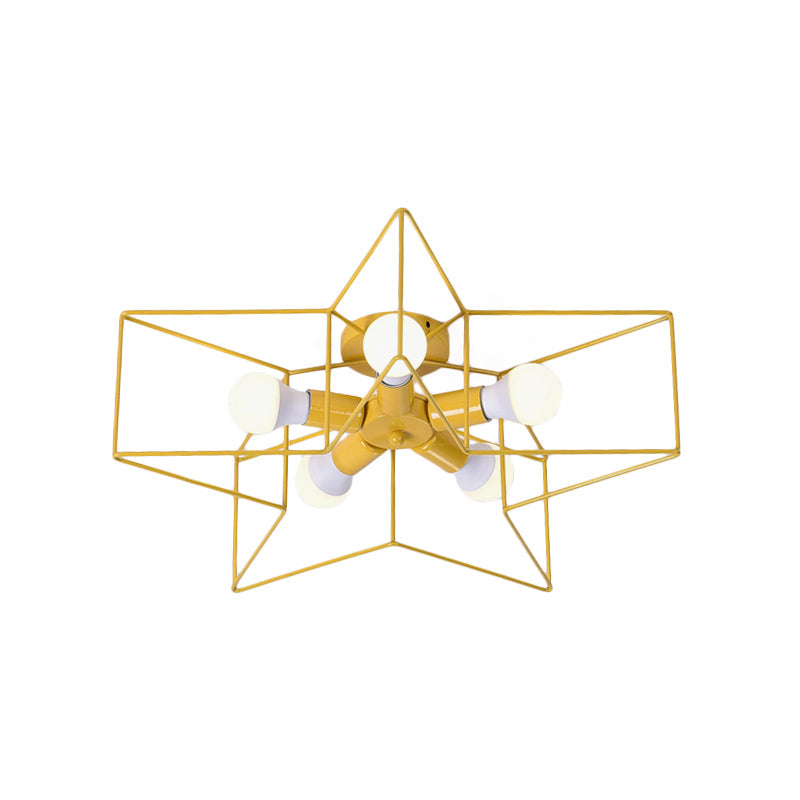 5-Light Industrial Ceiling Lamp For Kid’s Bedroom With Star Cage Design Yellow