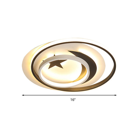 Kids Star Crescent Led Flush Mount Ceiling Light Fixture For Balcony White / Warm