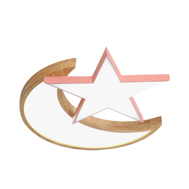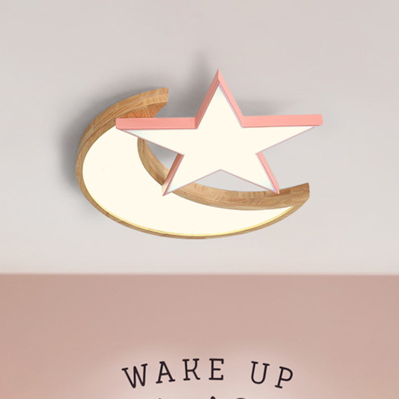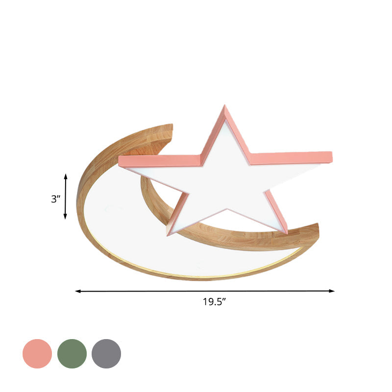 Minimalistic Led Bedroom Flush Light Fixture In Grey/Pink/Green With Moon And Star Acrylic Shade