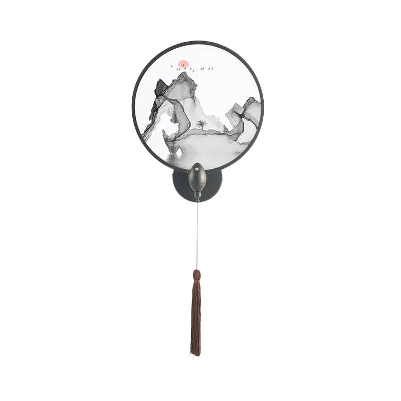 Chinese Style Led Wall Mural Light With Acrylic Shade For Bedroom Decor - Black Mountain Design