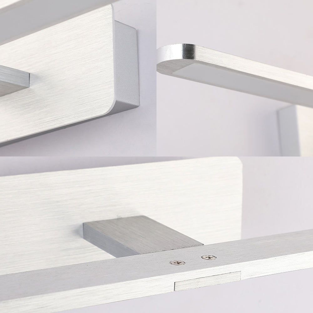 Cette applique murale en métal linéaire est un luminaire de vanité mural à DEL moderniste disponible en argent ou en nickel. Il mesure 19,5", 23,5" ou 34" de large et a une lumière blanche ou chaude. Il comprend une ampoule SMD.