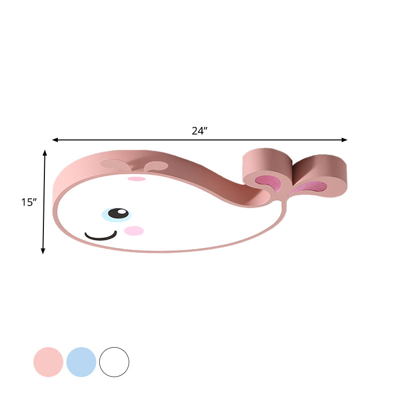 Macaron Dolphin Led Nursery Ceiling Light In Blue/Pink/White - Flush Mount Acrylic Fixture White