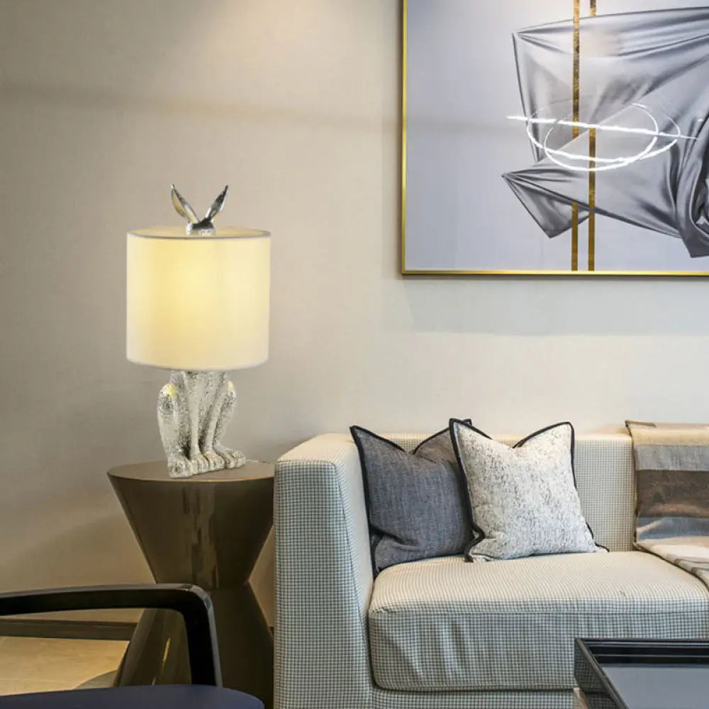 Lampe de table de chevet lapin - Lampe de table de chevet décorative en résine avec abat-jour en tissu