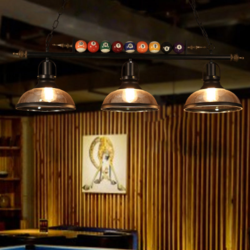 Industrial Style Hanging Light With Metal Black Finish And Billiard Ball Deco 3 / Dome