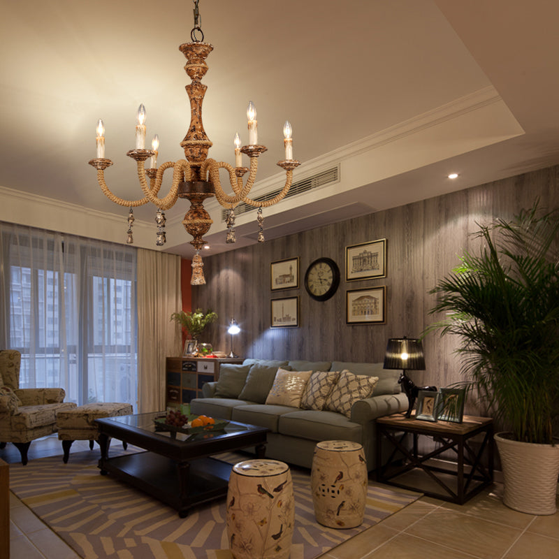 Metal Brown Chandelier Candle With 6 Bulbs Traditional Pendant Light Fixture