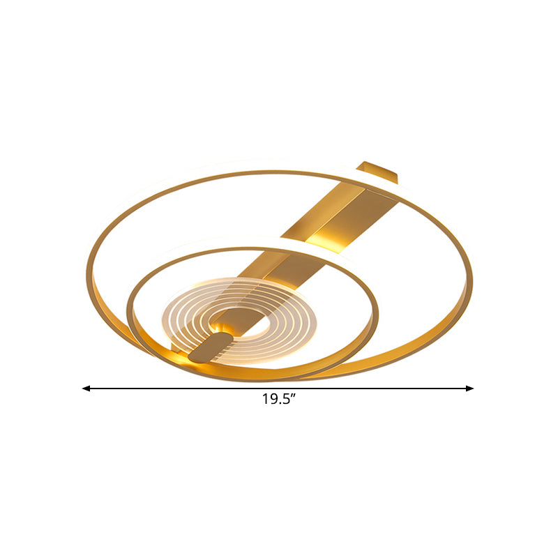 Contemporary Metal Flush Mount Led Gold Ceiling Lighting - Double Ring 16’/19.5’ Wide