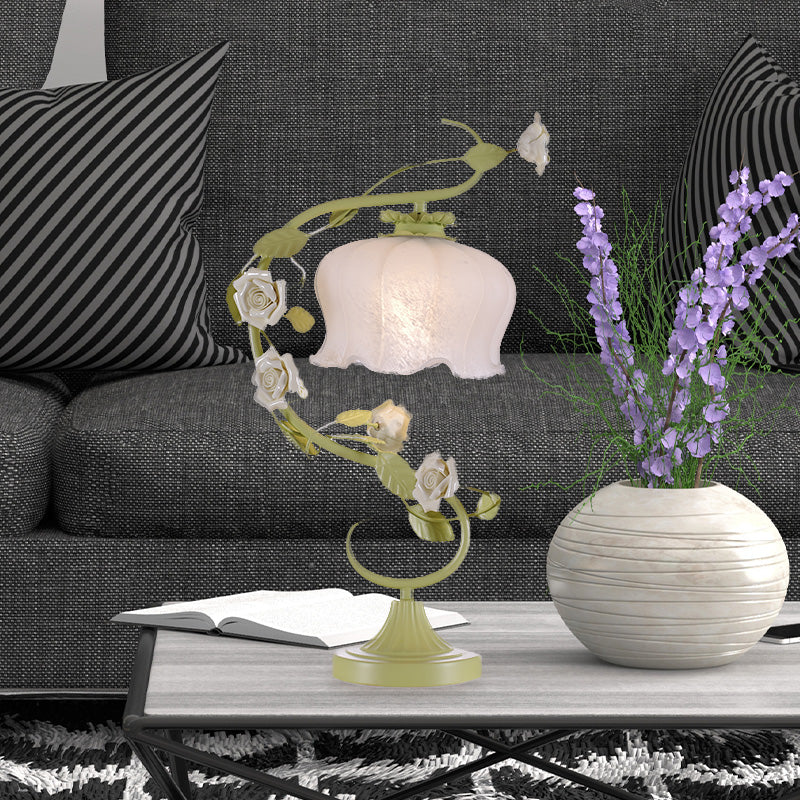 Metal Green Nightstand Lamp - Floral Design 1 Bulb Countryside Bedroom Lighting